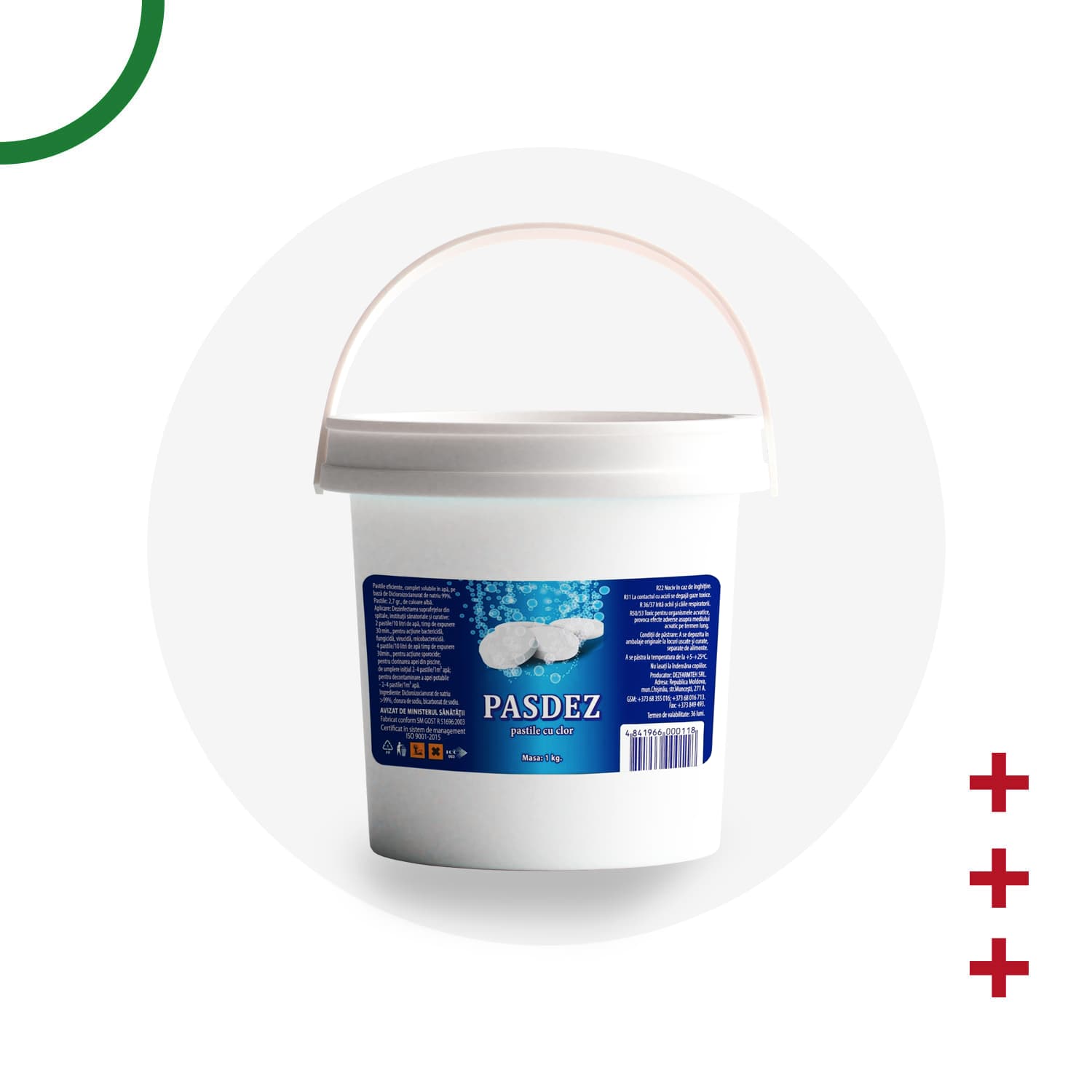 Pastile eficiente, complet solubile în apă, pe bazăde Dicloroizocianurat de natriu 99%. Pastile: 2,7 gr. ,de culoarea albă.Dicloroizocianurat de natriu >99%, bicarbonat de sodiu.(1 kg.)