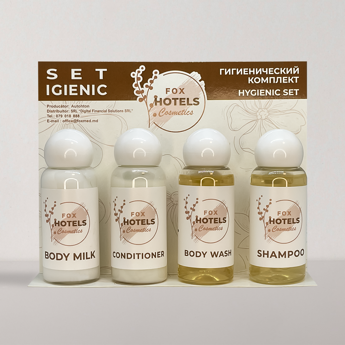 Toate produsele din kit-ul de cosmetice FOX Cosmetics respectă reglementările europene în vigoare și au fost selectate pentru a oferi oaspeților tot ce au nevoie în baie.
